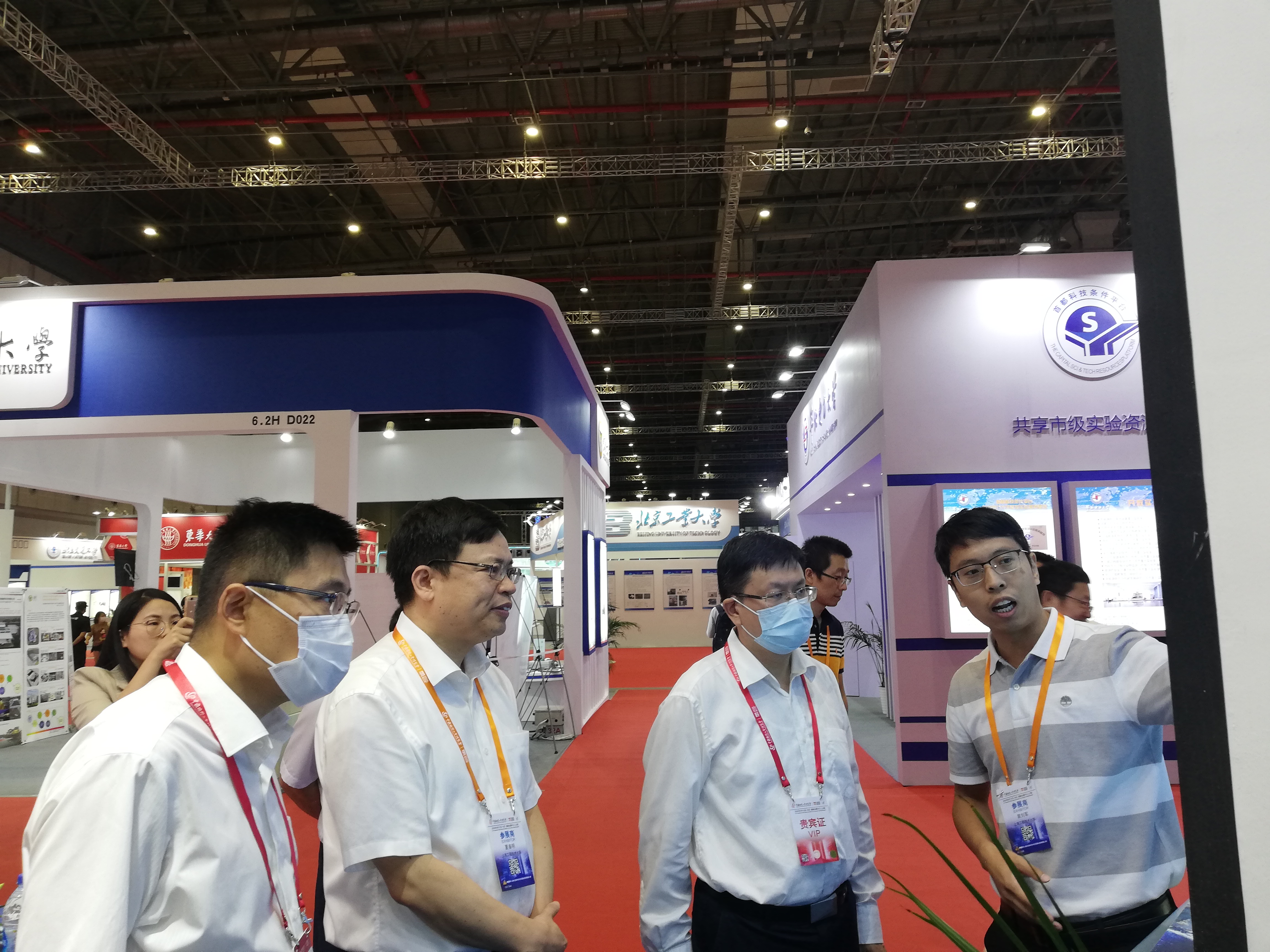 工博会开幕当天,教育部科技发展中心副主任刘红斌、上海市教委主任王平、上海市教委科技处处长许开宇和上海市教委科技发展中心主任陆震,在夏春明副校长的陪同下参观了我校展区,并听取了王际平教授团队进行的项目介绍。