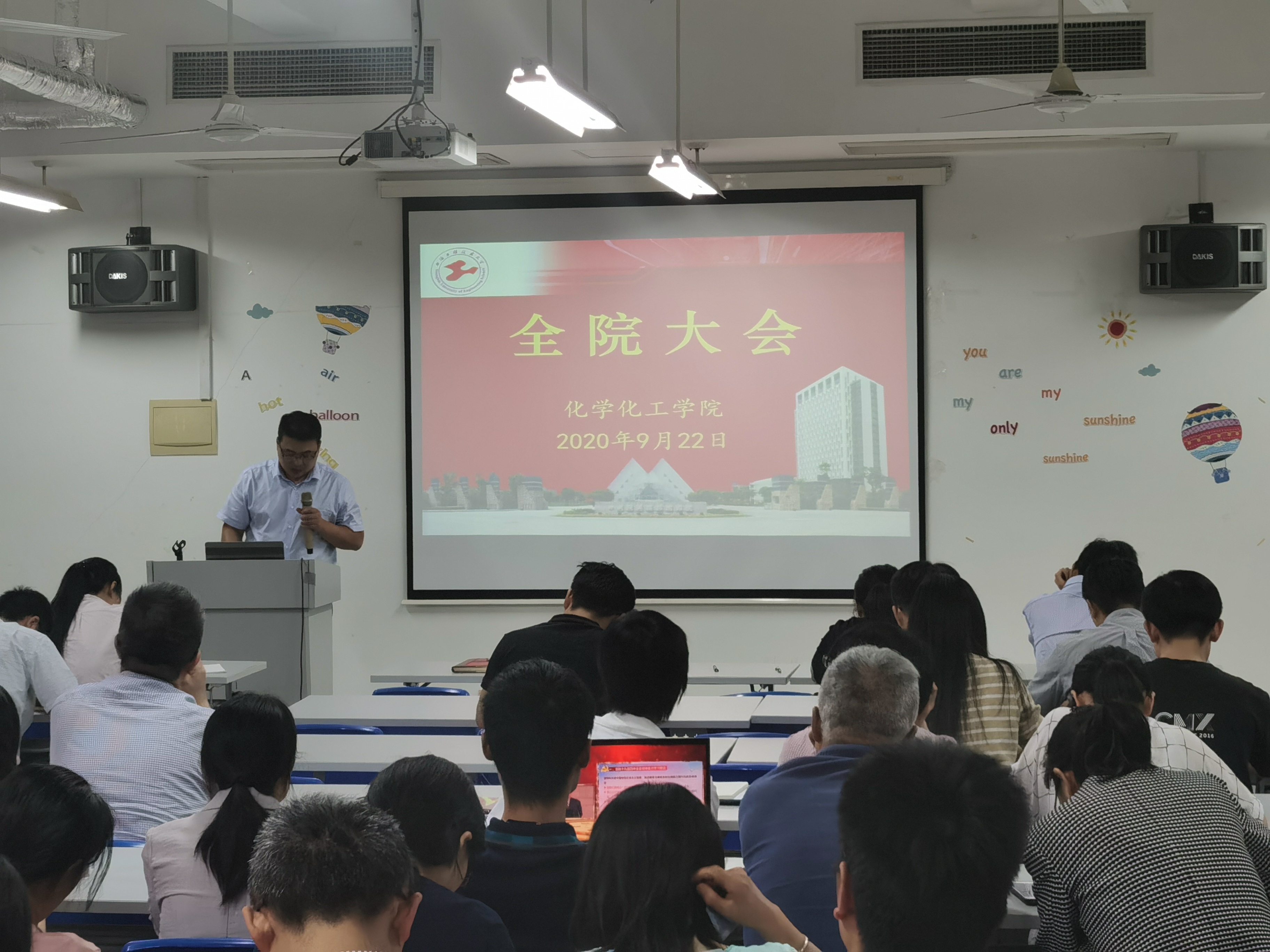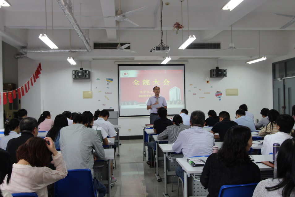 9月22日下午,化学化工学院在实训楼4405会议室召开新学期全院教职工大会,并开展师风师德教育活动,会议由院长饶品华主持。