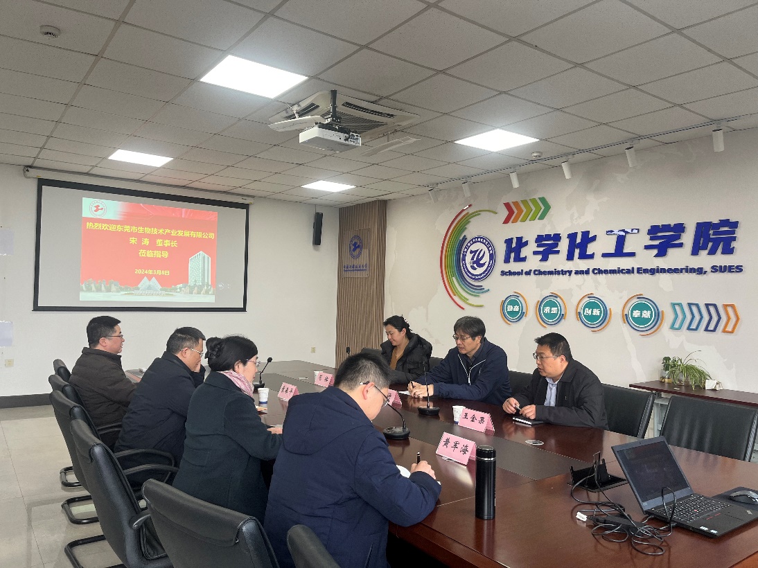 3月8日,东莞市生物技术产业发展有限公司董事长宋涛一行到访化学化工学院,学院院长王金果,学院高层次科研团队各项目负责人,校长办公室副主任范榕出席座谈。双方就创新药物早期开发、产业化研究、产学合作等方面深入交流,探索合作的新机制与新模式。
