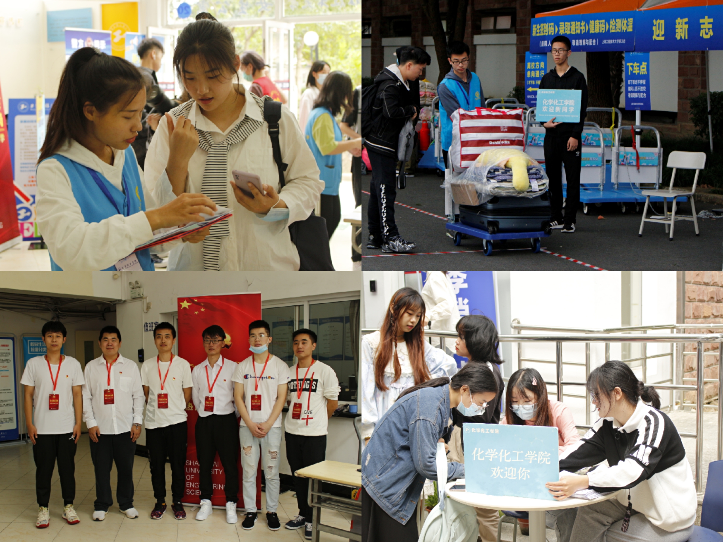 10月7日,化学化工学院迎来了20级新生,一张张崭新的面孔为校园注入新鲜活力。学校领导、学院领导先后慰问迎新工作的师生,并与新生亲切合影。