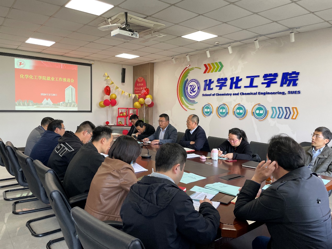 为深入贯彻落实党中央、国务院、教育部及上海市有关高校毕业生就业工作的决策部署,分析当前就业工作面临的形势,对2024届毕业生就业工作进行全面部署,3月29日化学化工学院在实训楼4414召开2024届毕业生就业推进会。学院党委书记宋勤健,党委副书记、院长王金果,副院长陆杰,副院长李亚,副院长王润锴,学院各党支部书记,各专业负责人、系主任和毕业班辅导员参加会议。