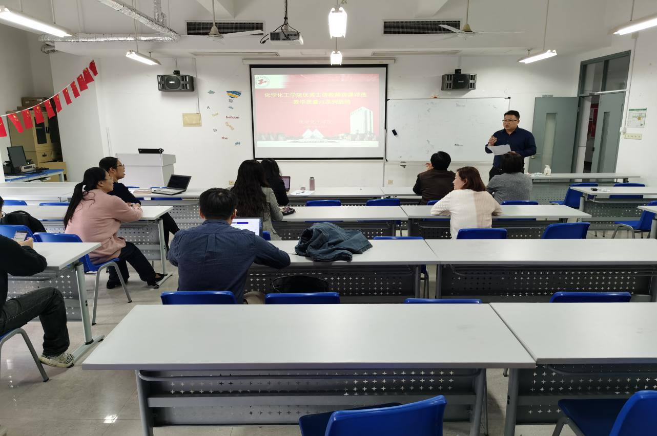 为进一步深化教学质量保障体系建设,持续提升教学质量,促进学校教风、学风建设,化学化工学院积极响应学校以“培养教学质量文化,落实教学内涵式发展”为主题的“教学质量月”活动,于10月27日以讲课比赛的形式开展了优秀主讲教师院内选拔活动。共6名教师主动参加了本次选拔,教学副院长王金果主持了此次选拔活动,甘文君教授、张书华教授、任新锋副教授担任了此次院内选拔的评委,学院近几年新入职的教师参加了本次公开示范课观摩活动。