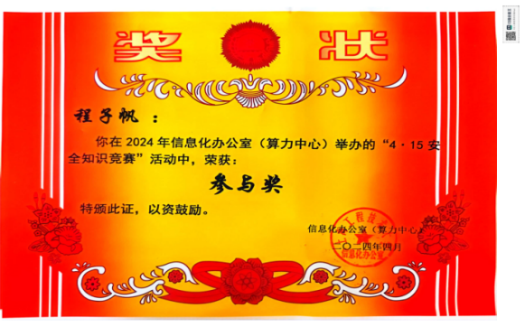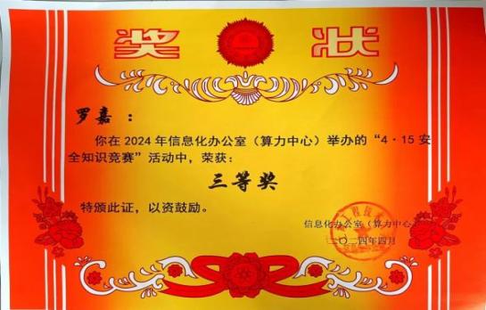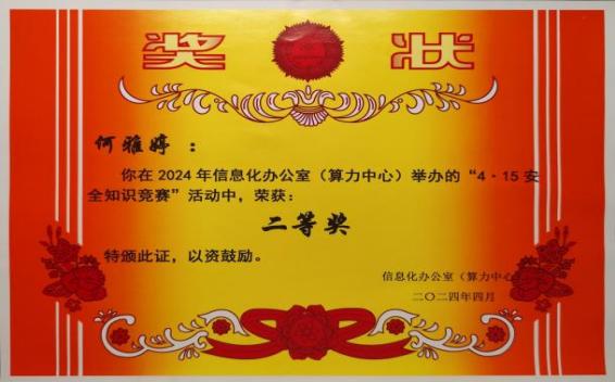 参与国家安全知识竞答能有效增强学生的国家安全意识。学院积极动员学生参加由信息化办公室(算力中心)、党委保卫部(处)(综治办、安全办)、资产与实验室管理处(招投标中心、大型仪器设备管理中心)联合开展的“4·15全民国家安全教育日”师生在线知识竞赛,取得了良好成效,全校16名获奖学生中我院学生5名,其中何雅婷荣获二等奖、罗嘉荣获三等奖。