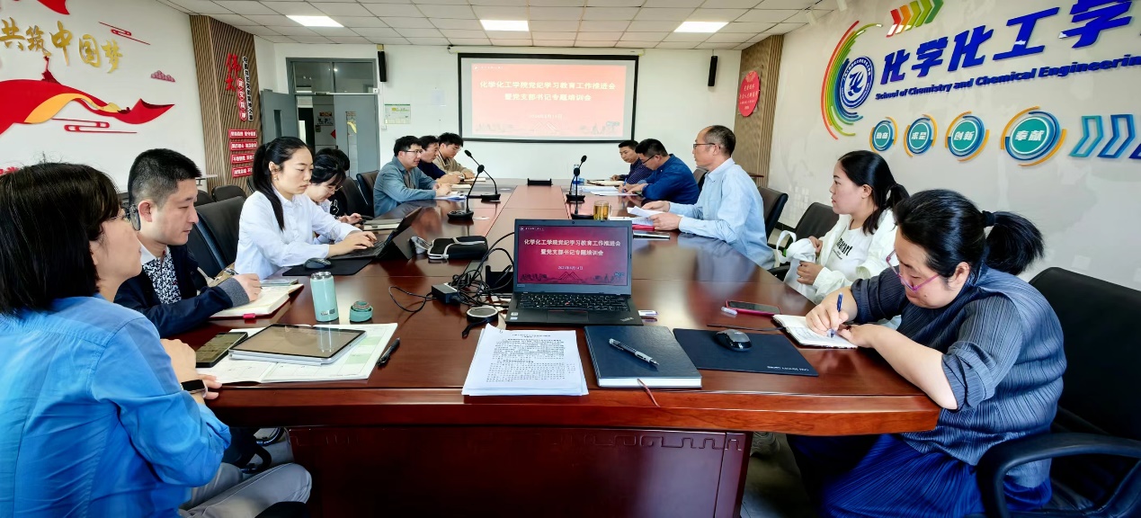 为更好地贯彻落实学校学院党纪学习教育教育实施方案,强化分层分类指导,化学化工学院于5月14日下午召开党纪学习教育工作推进会暨党支部书记专题培训会。会议由学院党委书记宋勤健主持,党委副书记秦颖、组织员、各党支部书记参加了会议。