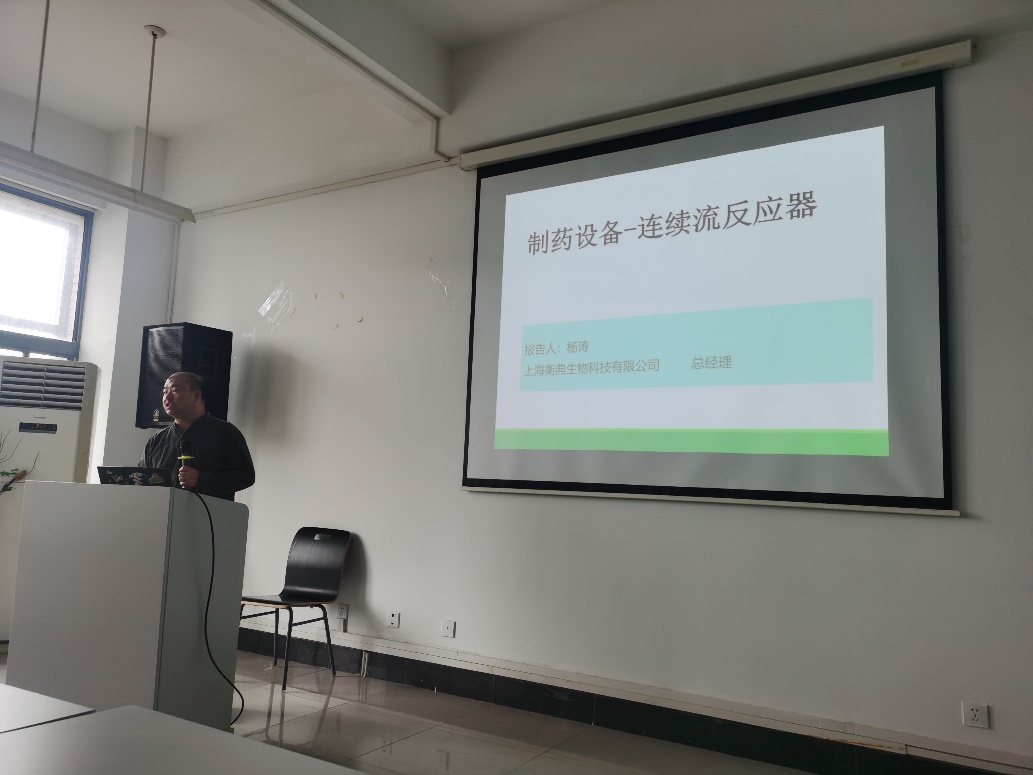 为了进一步推进校企合作,促进教育和产业的深度融合,为学生提供更贴近实际的教育资源和机会,6月26日中午,化学化工学院制药工程系郑静老师邀请行业专家上海衡典生物科技有限公司总经理杨涛老师在实训楼4418组织了一场题为“制药设备——连续流反应器”的特色课堂教学活动。为制药工程专业2021级的实践类课程“制药工程专业实验一”开展企业专家进课堂活动,为同学们分享最新的制药设备技术和行业前沿动态。