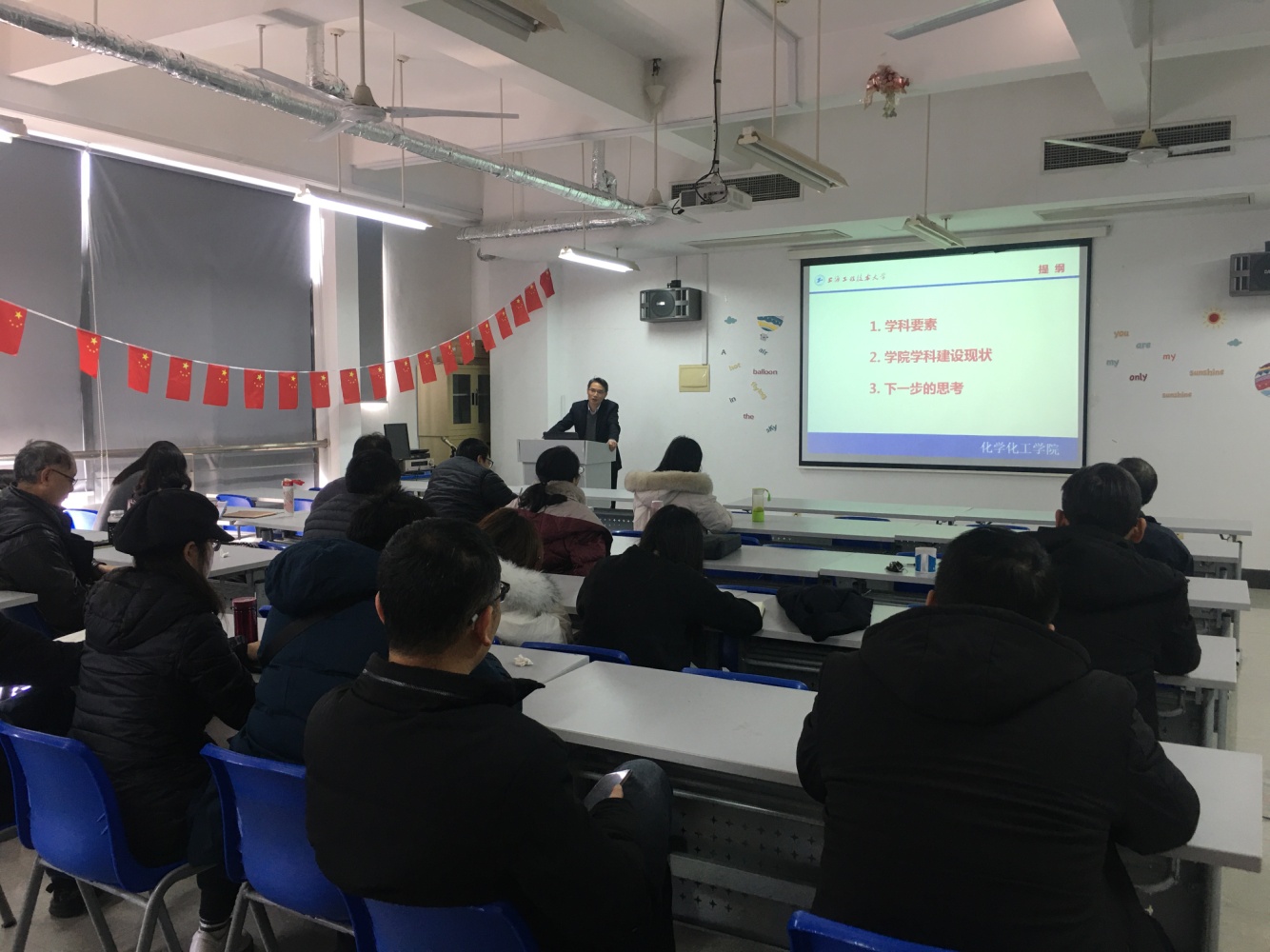 为营造良好的学术氛围,提高科研团队建设水平,12月30-31日,新年来临之际,化学化工学院团队建设与学科规划交流会在实训楼4403会议室举行。学院所有科研团队成员出席会议,会议由副院长陆杰教授主持。