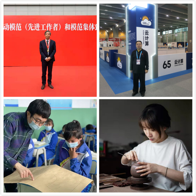 王安斌教授秉承技术报国理念荣获“上海市先进工作者”荣誉称号;胡斌教授爱岗敬业开拓进取荣获宝钢优秀教师奖;刘翔副教授尽职尽责为国选材担任第一届全国技能大赛云计算项目裁判长。抗“疫”期间,青年教师李千惠将25万元结婚费用捐赠抗疫一线,覃旭瑞副教授为学校防控疫情捐赠动态体温仪,艺术设计学院教师用画笔展现抗击疫情的坚定决心;停课不停学之际,千余名教师开设在线课程2969门次;科技成果获奖取得历史最好成绩,获2019年度上海市科学技术奖11项,其中,牵头首次获一等奖1项,获奖总数位居市属高校第一名;国家级项目获批数量及经费总额再创历史新高,获批2020年度国家自然科学基金项目33项,位居市属高校第五名,获批国家社科基金项目6项,位居市属工科高校第一名。学校教师在服务社会中厚植教育情怀,化学化工学院王锦成教授团队,关注农业,帮助农民蔬菜增产增收;中韩多媒体设计学院吴亚生教授团队,助力G60上海科技影都展示升级;纺织服装学院董海宇老师,奔赴喀什,为边疆教育事业奉献青春。