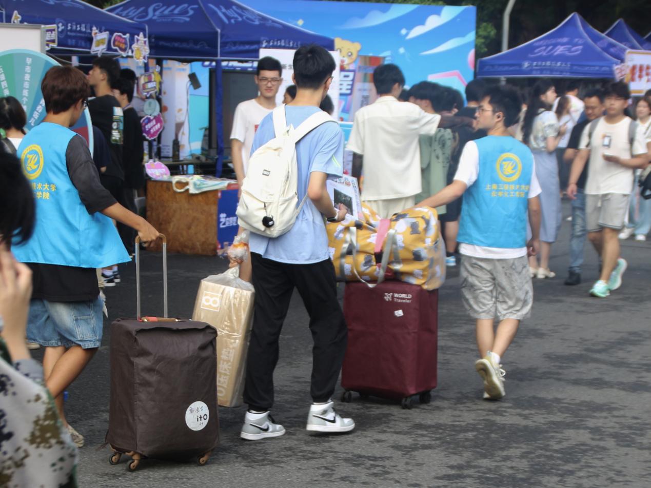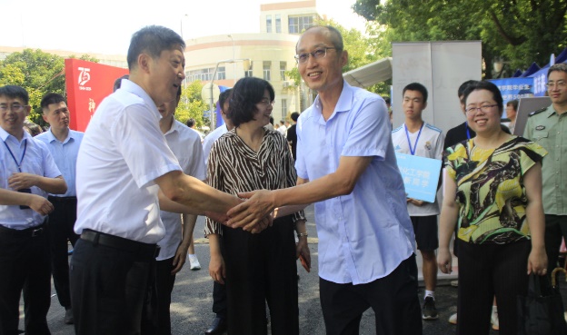 迎新伊始,校党委书记李江、校长俞涛、学院党委书记宋勤健、学院党委副书记秦颖来到勤学路迎新点,看望学院新生,学校和学院领导及老师们为新生的到来表示热烈的欢迎,并送出真诚的祝福,与新生们合影留念,亲切交谈,并慰问了迎新工作人员和学生志愿者们。