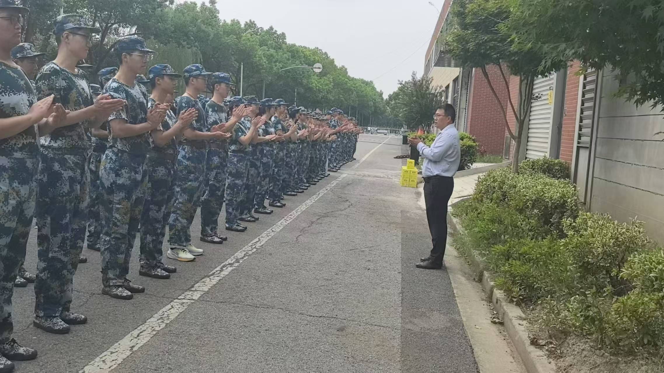 此次慰问活动不仅增强了师生之间的情感交流,也进一步激发了同学们的爱国热情和集体荣誉感。相信在学院领导的关怀与支持下,化院的学子们定能在军训中收获满满,以更加优异的成绩迎接未来的挑战。此次慰问活动向带训教官及参训学生发放了矿泉水等慰问品。
