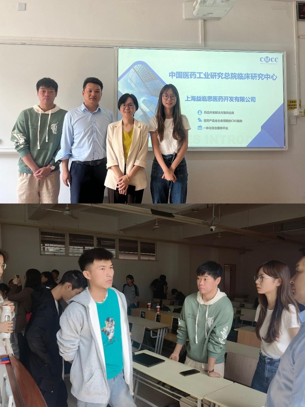 10月10日上午,《药剂学》课程主讲王晗老师特邀上海益临思医药开发有限公司张松经理作为优秀校友,回到了母校为同学们带来了一场有关药物临床试验发展历史及相应规要求的精彩讲座,同时分享了有关于临床试验CRO行业的最新发展动态以及未来趋势。与其同行的还有优秀毕业生代表,2018级和2019级制药工程专业的杨杰及黄立芃同学。