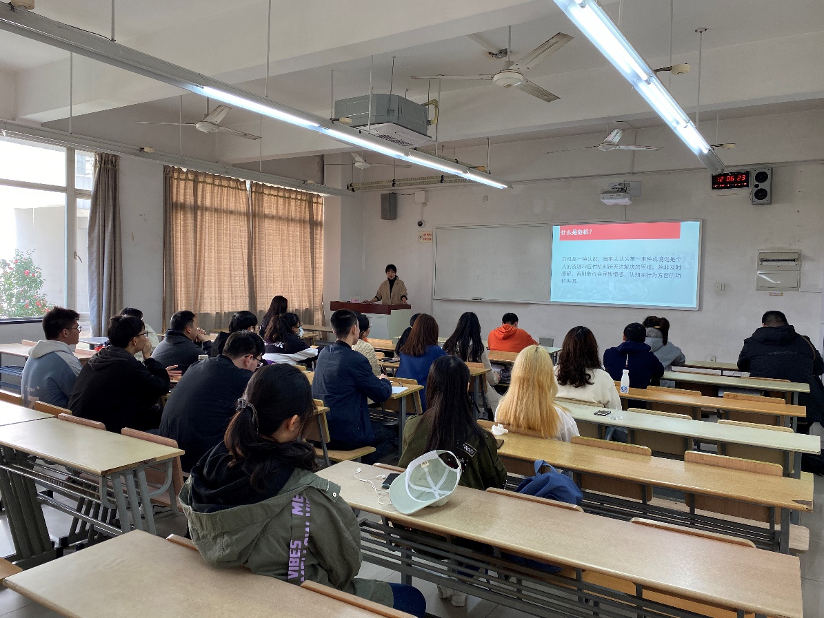 首先,学院党委副书记秦颖老师肯定了心理委员在高校心理健康宣传中的重要桥梁作用,是学校心理健康教育工作中的一支重要力量、是心理危机预警队伍的前沿部队。倡导同学们加强学习和掌握朋辈心理辅导工作的一般理论和操作技能,学习观察并及时报告同学中存在的各种异常心理现象,协助学校开展好心理危机预防与干预工作。