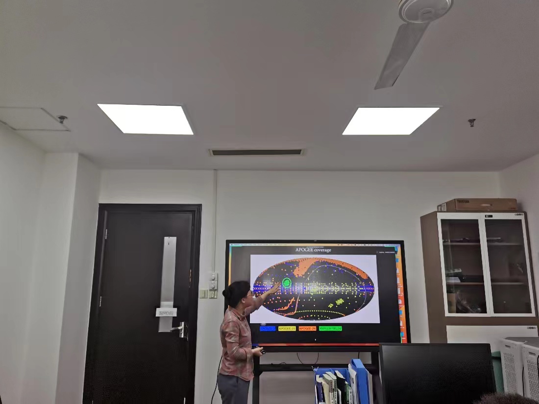 周颖颖博士后讲述了银河系核球的金属丰度分布直方图中的多峰结构可能的产生原因及其形态特征,介绍了如何使用YOLO等机器学习模型进行目标光谱检测,同时分析了银河系核球的6D相空间分布、化学丰度、年龄分布。指出太阳领域的金属丰度与运动学是密切相关的。周颖颖博士后与参会学生进行了亲切地交流,回答参会学生提出的问题并结合自身科研经验分享了自己的科研心得。参会学生收获颇丰,反响热烈。