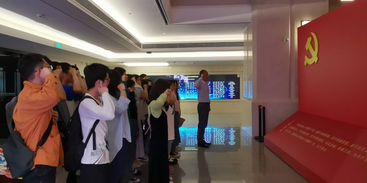 学院师生认真浏览了照片和实物等展品,感受革命先辈们的坚定信念和无畏精神,在感动和震撼的同时也深受激励和鞭策。党员师生们还在学院党委书记宋勤健的带领下重温了入党誓词,进一步坚定初心使命,时刻以党员的标准严格要求自己,以实际行动兑现对党的庄严承诺。