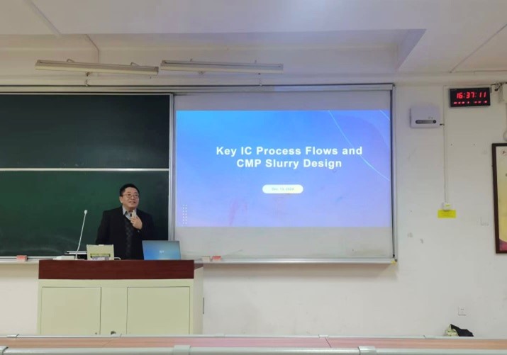 在教学过程中,李经理提到如何成功打破国外厂商对集成电路领域化学机械抛光液、部分功能性湿电子化学品、电镀液及添加剂这三大产品的垄断,并细致的说明如何使这些产品在特定领域实现技术突破。为同学们分享了行业内集成电路化学机械平坦化在关键半导体材料研发方面最新的发展进程。在课程的最后,李经理与学生积极互动,解答学生的问题,期望学生能努力学习,贡献一份自己的力量,促使集成电路芯片制造和先进封装领域取得新的升级与突破。