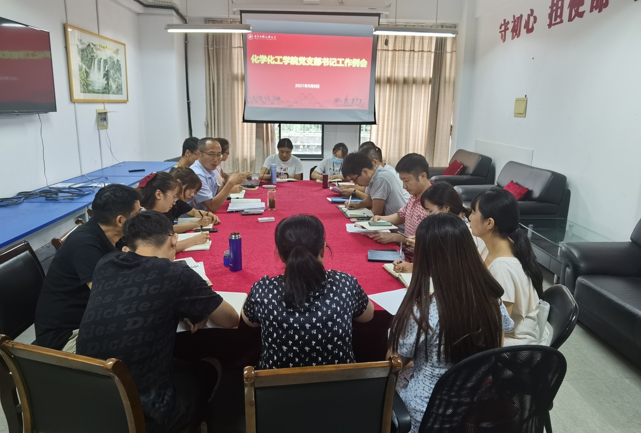 为更好地推进学院党史学习教育、党员发展和支部建设等工作,提升党建工作实效,化学化工学院于9月8日下午召开了党支部书记工作例会,传达相关会议精神和部署近期工作。会议由学院党委书记、党史学习教育领导小组组长宋勤健主持,副书记、副组长秦颖、组织员、各党支部书记和研究生辅导员参加了会议。
