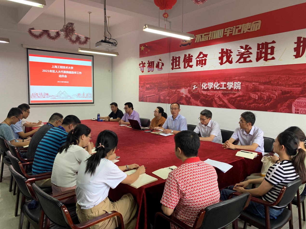 目前学校人大换届工作已全面展开,化学化工学院党委已于9月10日前全院教师群进行线上动员,并于学院党支部书记工作例会上强调各党支部需发挥好战斗堡垒作用,引领各系师生全力配合此项工作。9月14日下午,化学化工学院在实训楼4403会议室召开2021年松江区人大代表换届选举工作线下动员会,对人大代表换届选举工作进行动员部署。学院党委书记宋勤健作动员讲话,党委副书记秦颖主持会议并介绍选举工作安排。学院全体班子成员、选举工作联络员、各室系负责人、部分教职工和学生代表参加会议。