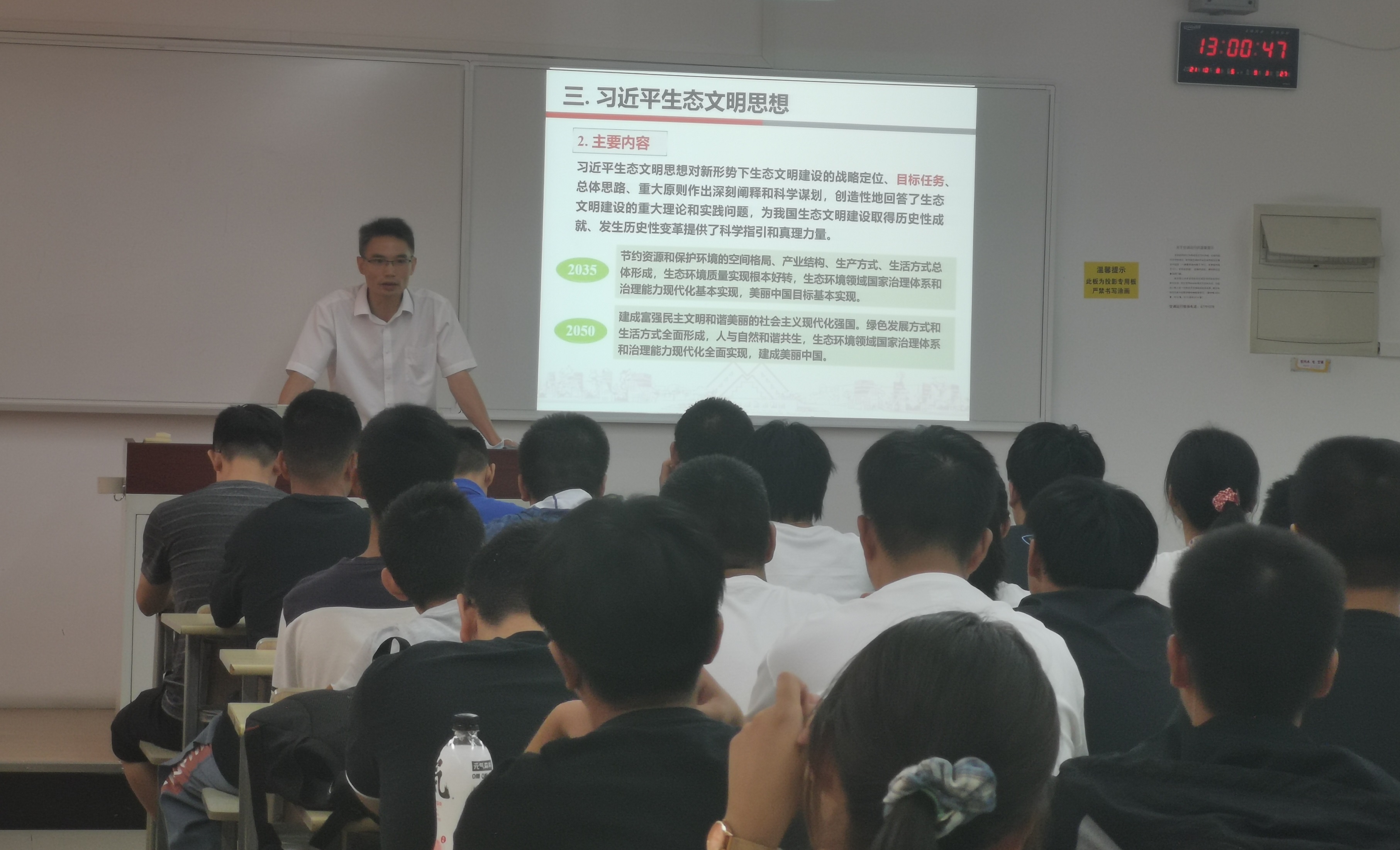 化学化工学院党委副书记、院长饶品华教授做了题为“奋进新起点、拥抱新时代”的入党启蒙教育。饶品华教授以学校发展历程为切入点、以党建引领学科发展为抓手,结合我校环境工程专业特色,生动诠释了习近平生态文明思想的形成背景及主要内容。饶品华教授勉励新生们从思想上、行动上同党的方针政策及战略部署高度统一起来,通过大学四年的锤炼,以扎实的专业基础服务好国家重大需求、实践好习近平生态文明思想,为中华民族的伟大复兴做贡献。