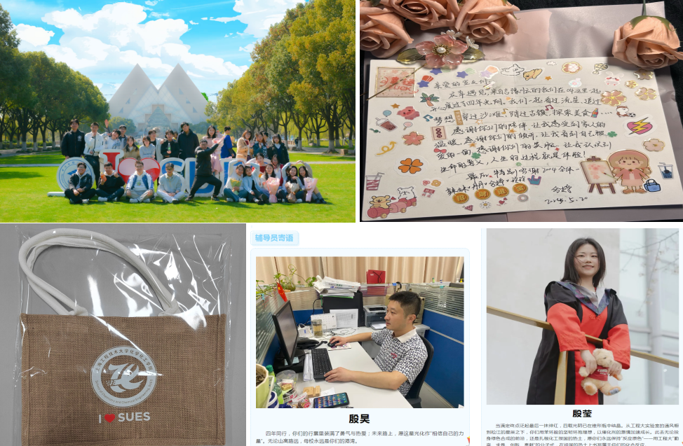 活动涵盖创意与温情双重维度。学院发起“创想毕业‘视’界”集体照征集,定格校园最美瞬间;辅导员与党支部书记以“青春行囊·辅导员心语添星光”主题寄语,传递“保持热爱,奔赴山海”的青春嘱托。毕业生手写“最暖母校记忆”,分享宿舍梦想与感恩故事,定制专属毕业礼物,让校园文化融入纪念品。