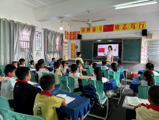 活动伊始,团队成员为孩子们带来了一堂生动的红色主题教育课——“国旗的故事”。从国旗的设计理念到背后的历史意义,从革命先辈的英勇奋斗到新中国的伟大成就,团队成员用通俗易懂的语言和鲜活的事例,让孩子们深刻理解了国旗所承载的深厚情感和崇高精神。孩子们听得聚精会神,眼中闪烁着对祖国的热爱与自豪。