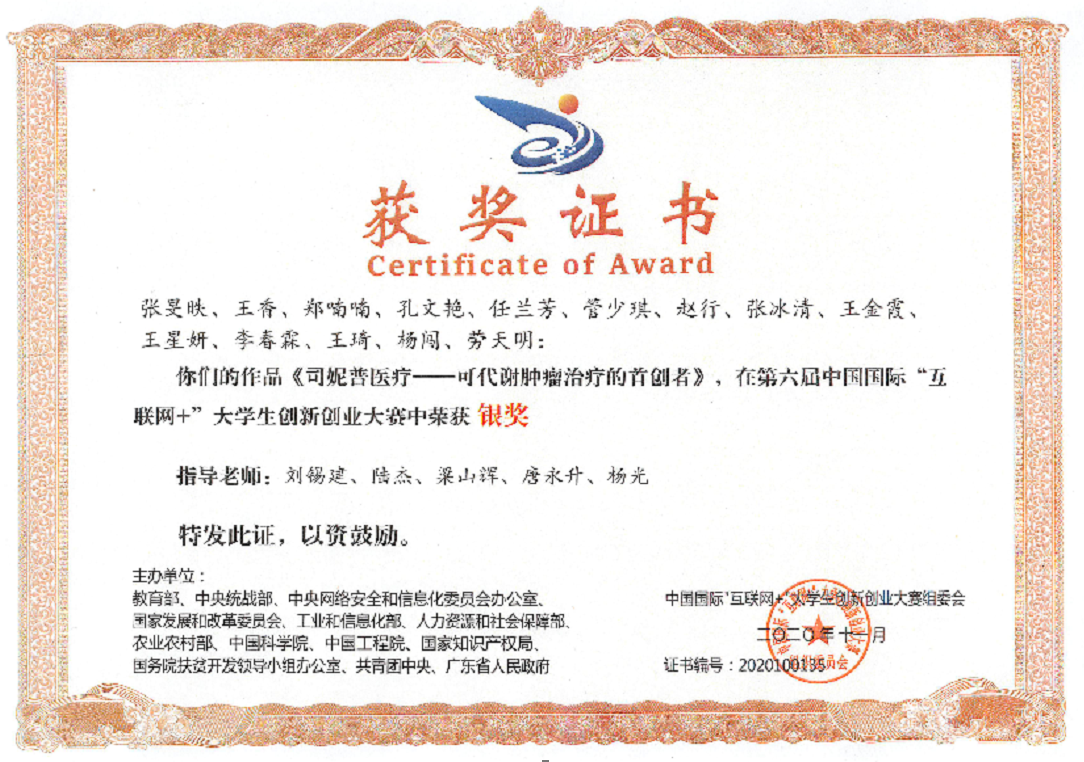 2020年第六届中国国际“互联网+”大学生创新创业大赛银奖
