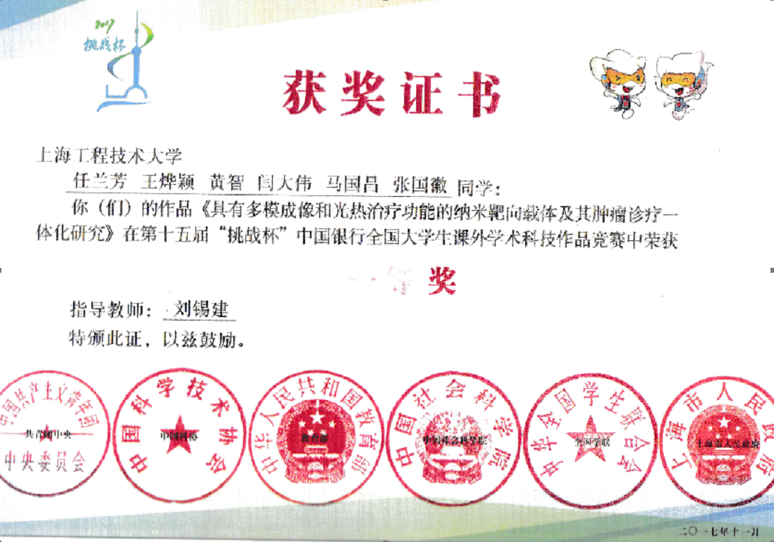 近年来,学院创新创业青年导师团队和专业竞赛青年导师团队均取得优异的成绩,刘锡建老师团队、郑静老师团队、唐博合金老师团队纷纷取得突破,陆续取得各类竞赛全国特等奖、一、二等奖的优秀成绩。近三年,在专业教师的指导下,学生主持申报获批国家级、市级和校级创新创业项目60余项;以第1作者发表了文章54篇,授权发明专利6项;获得国家级和省市级奖项67项,获奖人次达到200人次。获2017年“挑战杯”全国一等奖、上海市特等奖,2018、2020年“知行杯”上海市大学生社会实践项目大赛上海市三等奖,2018年“创青春”上海市大学生创业大赛上海市铜奖,2019年第十六届“挑战杯”大学生课外学术作品竞赛上海市一等奖、二等奖各一项,2019年制药工程设计大赛全国一等奖,2020年第十二届“挑战杯”大学生创业计划大赛上海市银奖两项,铜奖三项,2020年“互联网+”全国银奖,2020年大学生化工设计竞赛全国一等奖,2021年“挑战杯”专项擂台赛全国特等奖,主体赛上海市二等奖,目前正在积极备赛国赛。