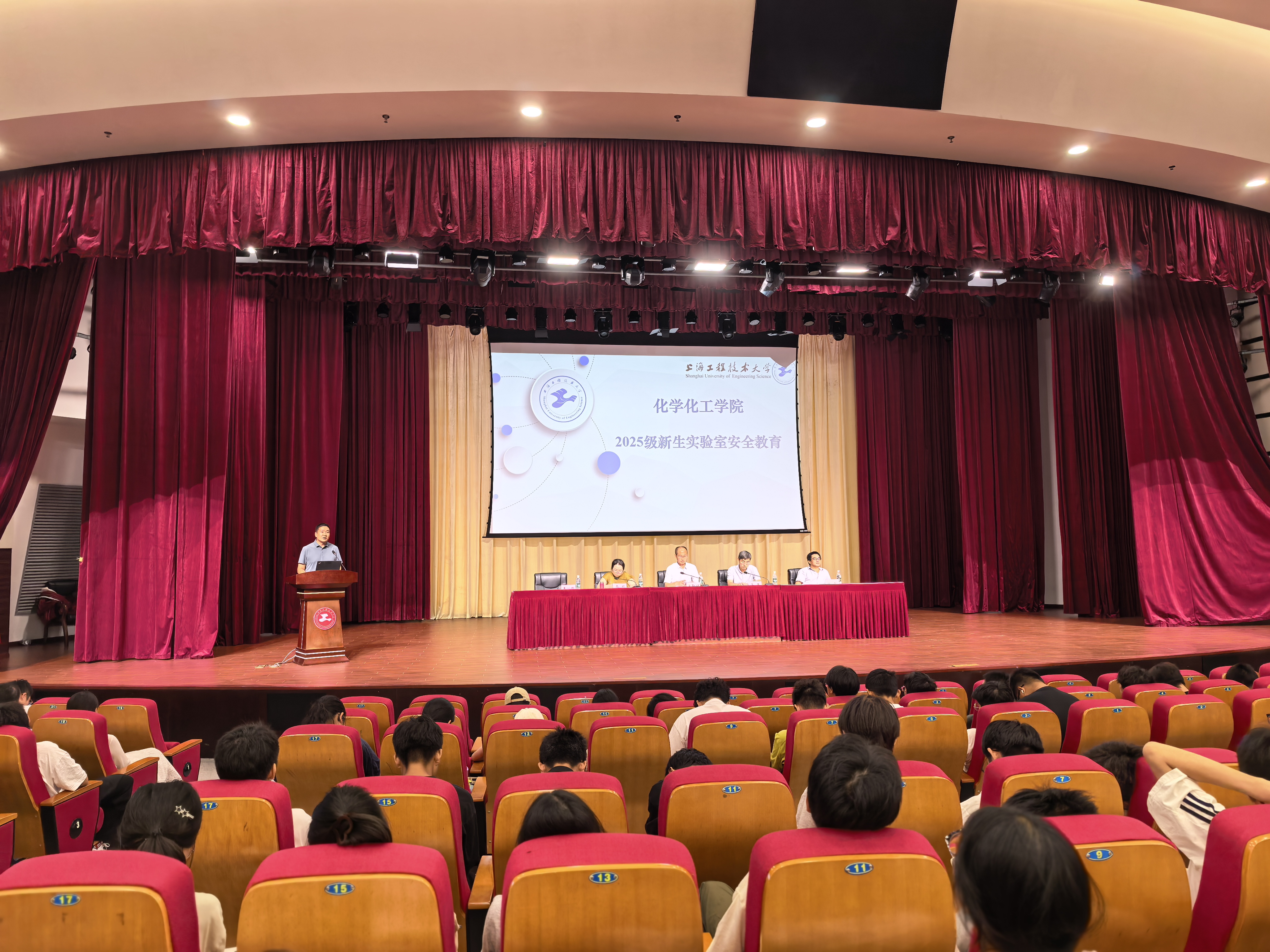 9月19日下午,化学化工学院在志宏堂开展新生入学教育。学院领导、教师代表、全体辅导员及大学城派出所所长朱建出席会议,2025级全体新生参加会议,学院党委副书记秦颖主持。