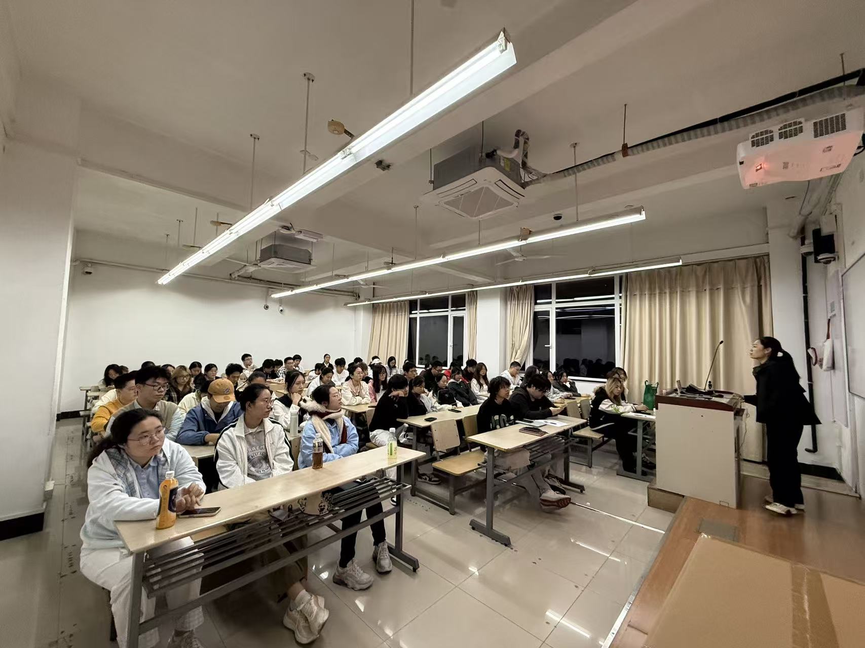 培训会上,王老师强调学生干部应明确自身职责,树立服务意识,发挥模范带头作用,同时鼓励大家勇于创新,积极为学院发展贡献力量。随后,各部门部长依次上台,就本部门的工作内容、职责分工、工作流程及未来规划等方面进行了详细介绍与培训,使新成员对各自岗位有了更清晰的认识。在讨论交流环节,与会干部积极发言,分享工作经验,提出工作难题,共同探讨解决方案。现场气氛热烈,大家纷纷表示,通过此次培训,不仅加深了对团委学生会工作的理解,还增强了团队协作意识和责任感。