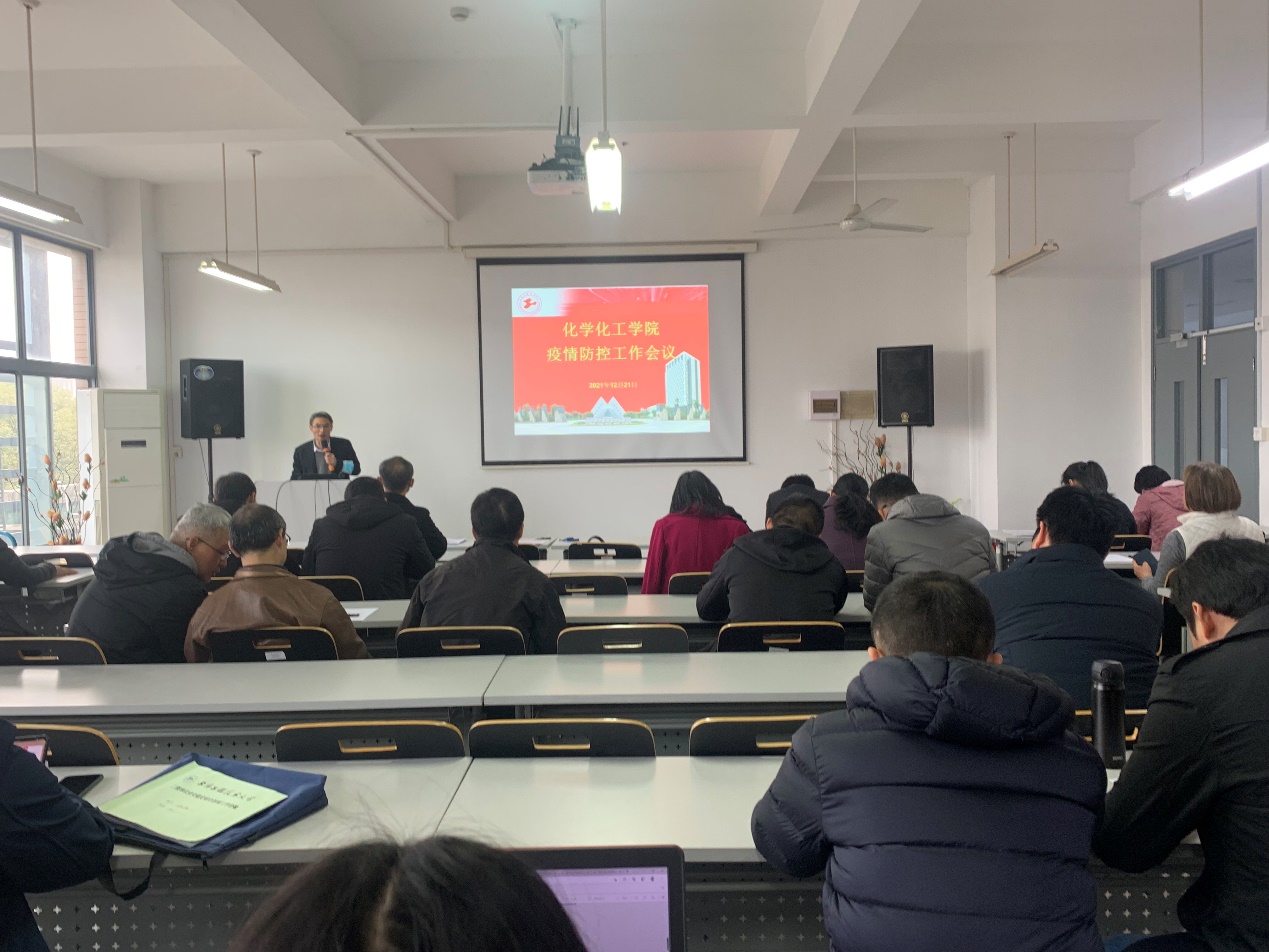 为进一步深刻领会并严格贯彻落实中央、上海市、市教委和学校党委疫情防控精神和工作要求,化学化工学院于12月24日下午,在实训楼4404会议室召开了学院党委中心组疫情防控专题学习会,学院党委委员、工会主席出席了会议,会议由学院党委书记宋勤健主持。