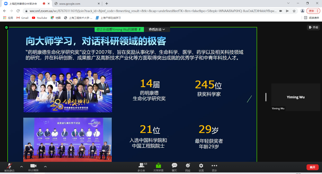 同时,上海美迪西生物医药股份有限公司和药明康德分别在线上面向化工学院22届毕业生开展宣讲会。两家招聘单位分别通过视频展示、PPT讲解的方式对公司介绍、员工福利、岗位需求、晋升机会、应聘要求等方面进行了详细讲解,极大程度上调动了拥有就业意向的和备考研究生的同学们的兴趣。