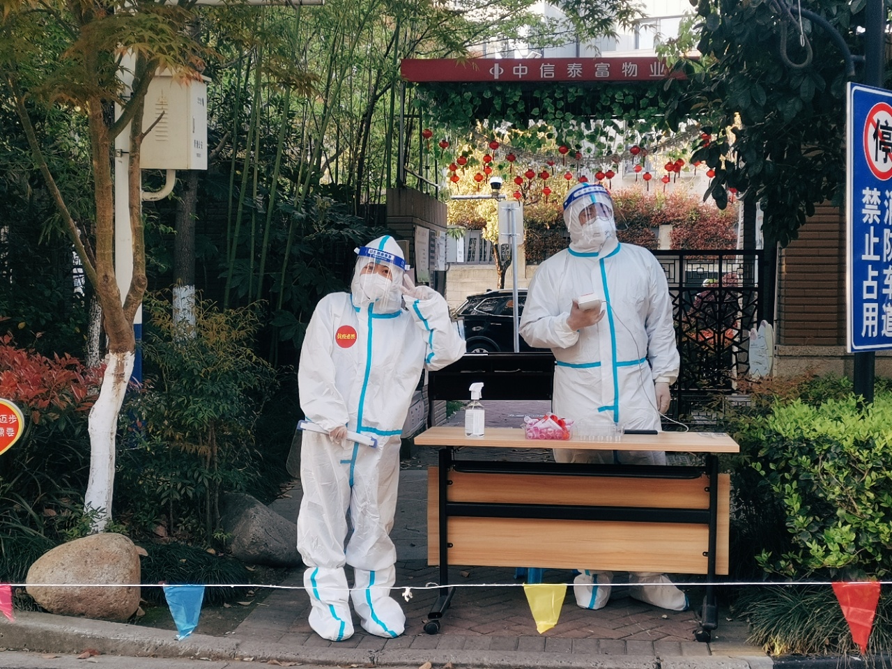 党员龚逸群隔离在小区,她积极参与到小区抗疫一线,引领居民有序参与检测采样、将居民团购物品送货到门、收集汇总抗原检测照片、维持核酸检测秩序,疫情一日不除,她就会在抗疫岗位上一日不退。