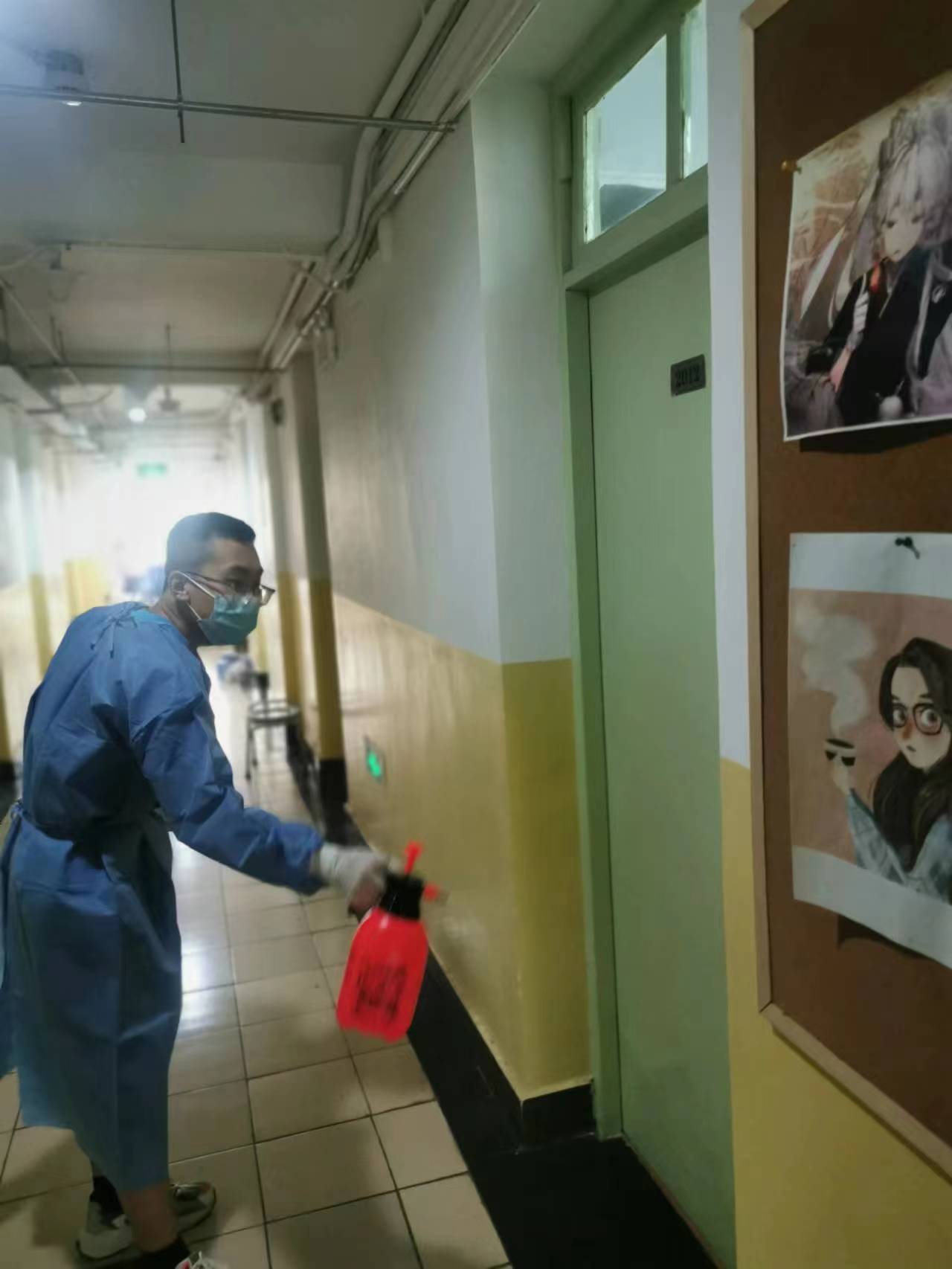 党员吴阳主动报名参与楼栋抗疫志愿服务,担任楼栋党小组组长,统计宿舍居住情况、对楼道清扫消杀、逐一分发抗原、组织同学核酸检测、提醒同学加强自我防护,尽心尽力为同学服务。