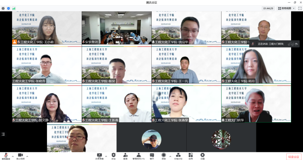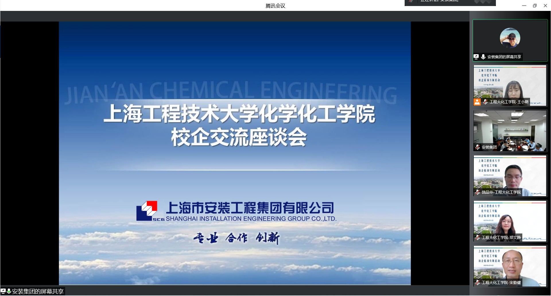 为深入贯彻教育部关于访企拓岗促就业专项行动的精神,落实上海市教委和学校党委关于促进毕业生就业工作的相关工作要求,6月15日上午,化学化工学院线上走访了上海市安装工程集团有限公司。学校党委副书记、纪委书记门妍萍,学院党委书记宋勤健,学院党委副书记、院长饶品华,学院党委副书记秦颖及学生工作办公室全体辅导员参加了会议。