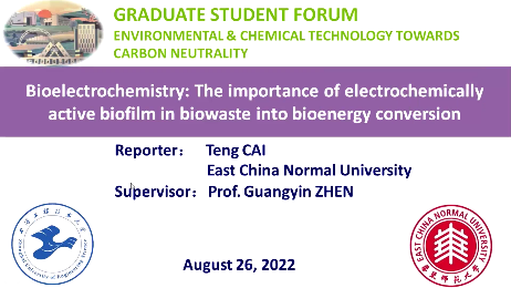 由我校环境与化工过程集成优化国际联合实验室举办的研究生论坛于2022年8月26日线上举行。本次研究生论坛的主题是“面向碳中和的环境与化工技术”,来自英国曼彻斯特大学、日本东北大学、上海交通大学、华东师范大学、东华大学、上海理工大学、上海师范大学、浙江工业大学、北方工业大学等十余所国内外院校的近百名研究生线上参加。论坛经初筛选取17研究生就最新的科研进展进行了全英文汇报交流。