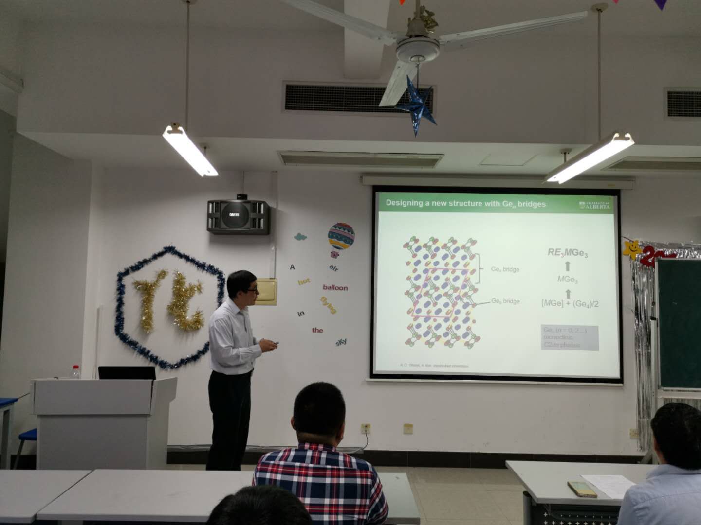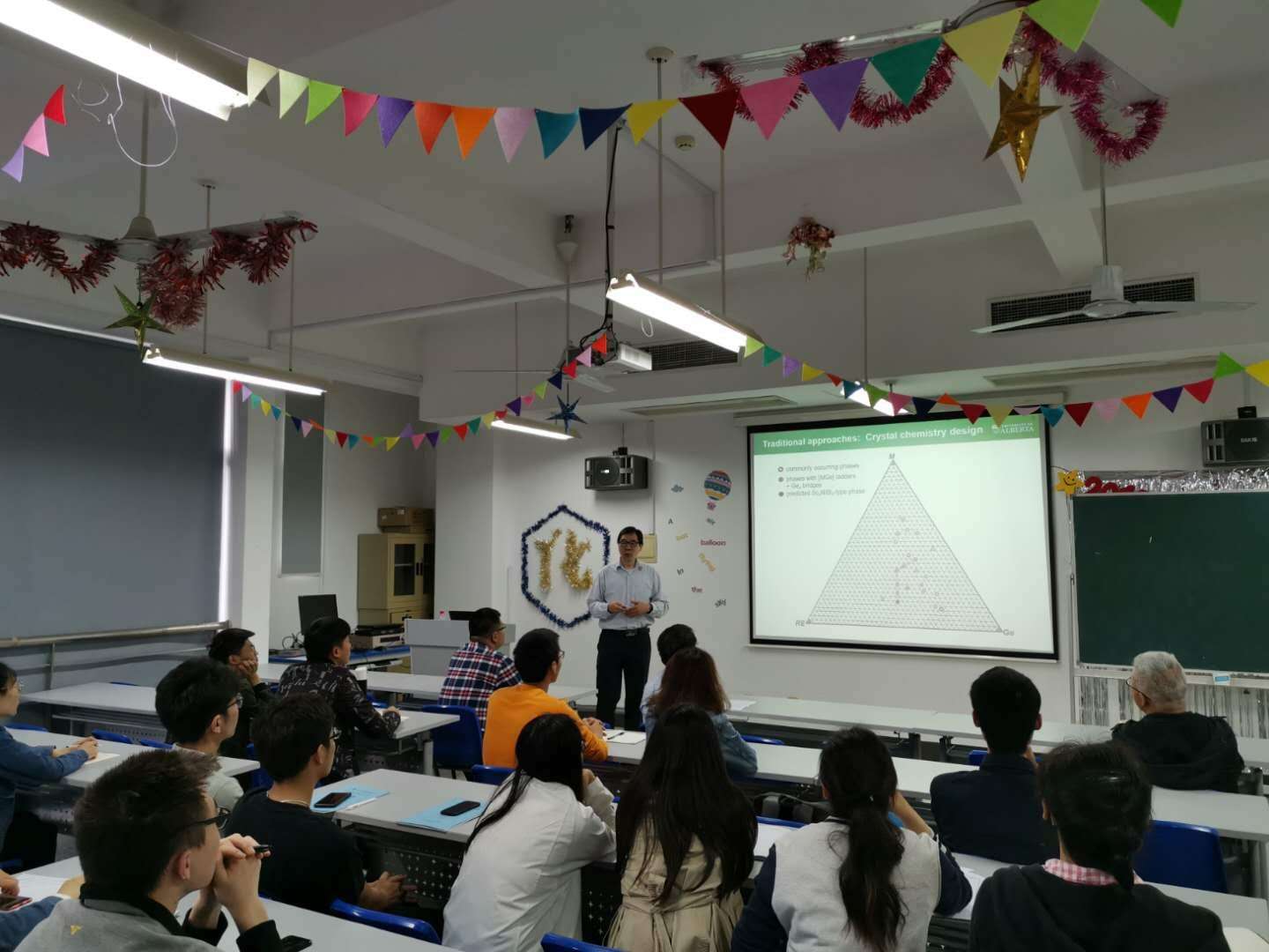 5月15日上午10点,加拿大阿尔伯塔大学Arthur Mar教授应邀来化学化工学院作学术报告。报告题为“Accelerating the Discovery of Solid State Materials: From Traditional to Machine-Learning Approaches”,报告由吴远东教授主持,学院老师及研究生参加了本次报告会。Arthur Mar教授首先介绍了设计新型固态材料的各种方法,与DFT计算等方法相比,Machine-Learning方法具有廉价、高效等特点。Arthur Mar教授课题组将Machine-Learning方法应用于设计新型非线性光学材料、热电材料等,成功合成了新型二元AB化合物、三元ABC化合物、Heusler相以及半Heusler相化合物。此次报告给各位老师和同学提供了科学研究的新思路,大家感觉受益颇深。Arthur Mar教授于1992年在美国西北大学获得博士学位,2004-至今为阿尔伯塔大学教授,2003-2008年担任Chemisty of Matenials杂志编委。其主要研究方向为磷化物、砷化物以及硫族化合物的合成、结构测定及相关性能研究。在Accounts of Chemical Research, Journal of the American Chemical Society等国际著名期刊上发表研究论文数百余篇。