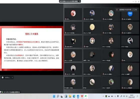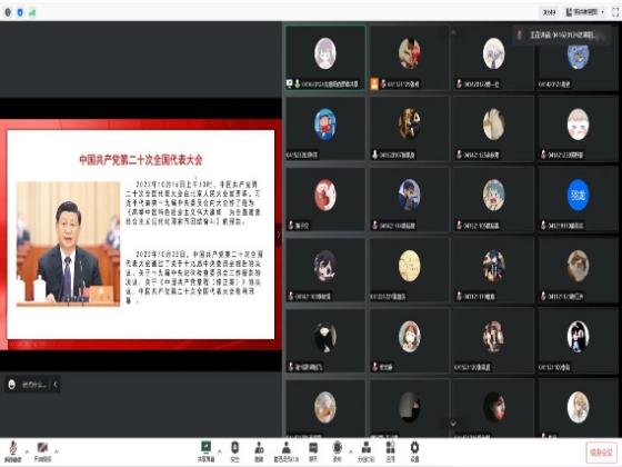 10月27日,化学化工学院团委书记郑文静老师带领学院团委、学生会共青团干部以线上线下结合的方式召开党的二十大精神主题学习会。