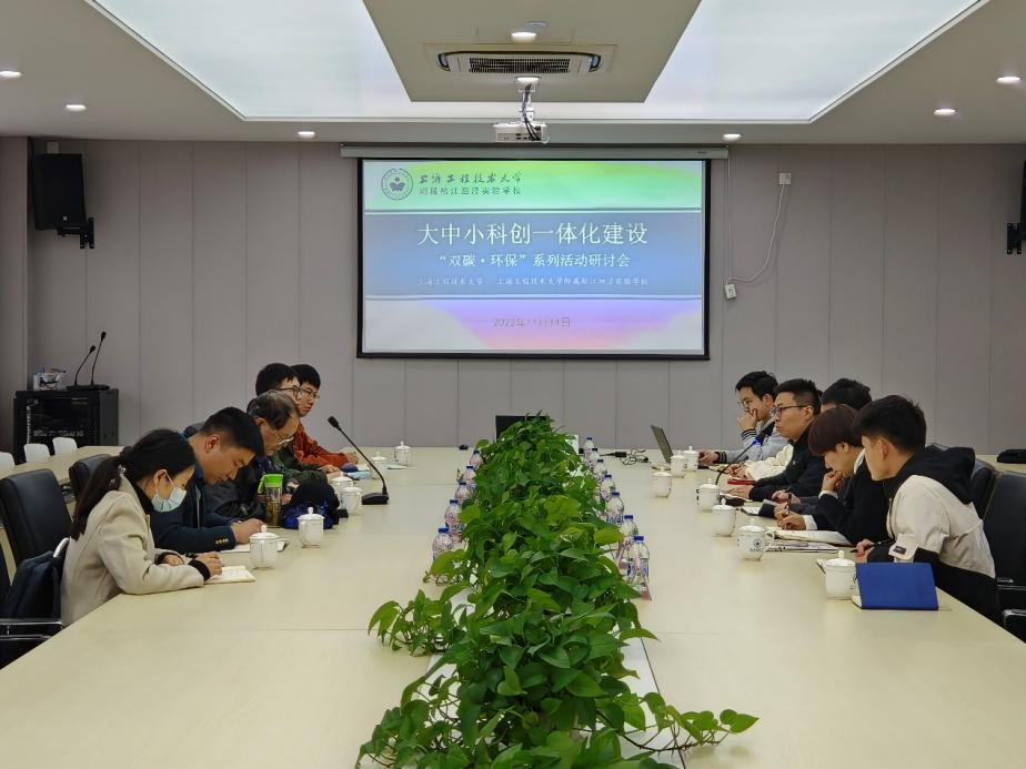 为深入学习贯彻党的二十大精神,进一步探索创新党建工作新模式,化学化工学院环境工程专业教工支部积极探索推进绿色低碳发展教育教学。11月14日下午,以大中小科创一体化建设为目标,环境工程专业教工支部与上海工程技术大学附属松江泗泾实验学校(工程大泗泾附校)开展了“双碳·环保”系列活动研讨会。工程大泗泾附校校长季国栋、副校长夏茂进、张继民,相关学科教师,环境工程专业学科带头人张文启教授、教工党支部书记胡婷莛、副系主任王润锴以及三位专任教师代表参会。会议由工程大泗泾附校副校长张继民老师主持。