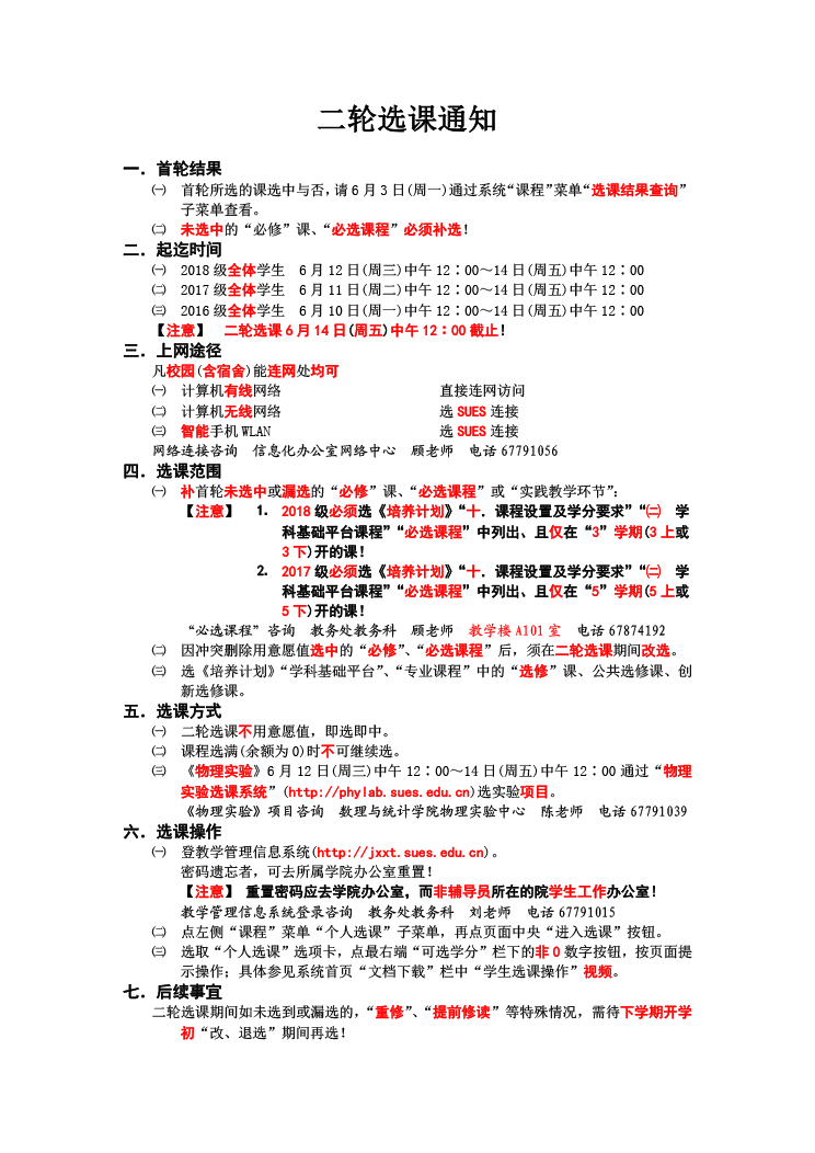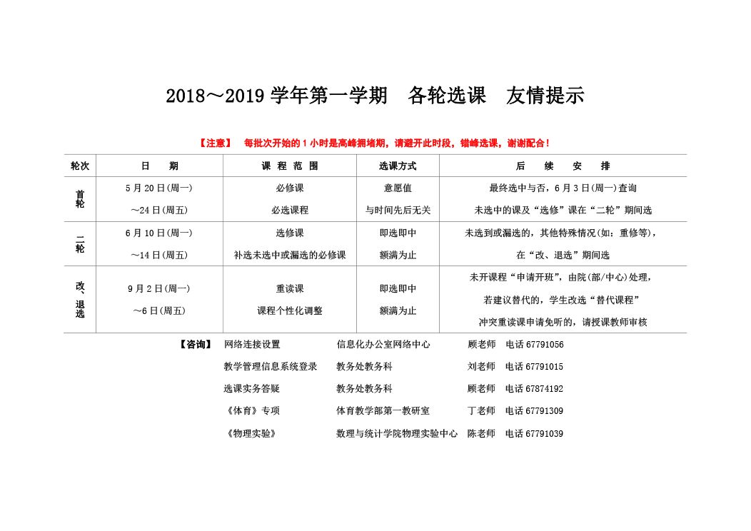 2019~2020学年第一学期二轮选课通知 2019~2020学年第一学期各轮选课友情提示