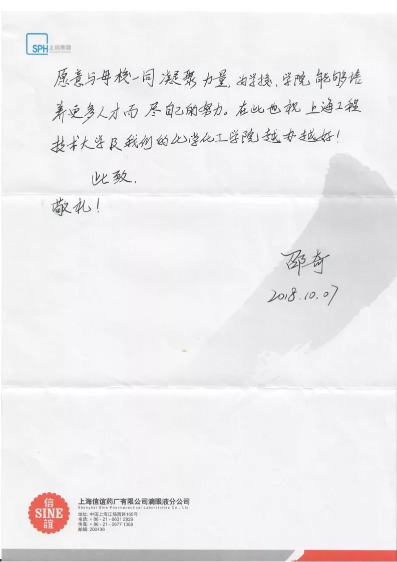 在年初的校友寻访活动中,邵奇校友通过寻访团师生向自己曾经就读的化学化工学院表达了诚挚的祝福:“祝化工学院越办越好,学子遍天下,美誉传世间。”