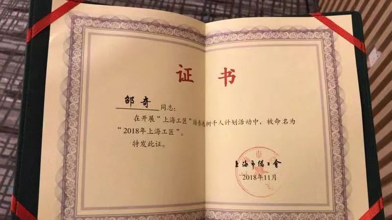 受表彰的2018年上海工匠名单里,我校杰出校友邵奇赫然在列。