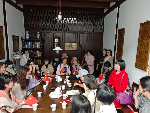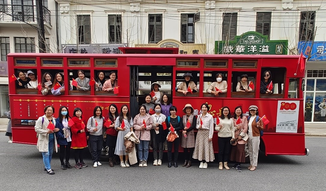在活动中,大家乘坐“初心号”红色巴士,“穿越时空隧道”回到1920年的上海,重温光辉革命岁月中一段段充满艰辛、可歌可泣的光影传奇。女教师们热情饱满,纷纷完成了一大会址、四行仓库、上海大剧院等8个任务点的打卡。为了让大家更加了解一段段历史传奇,在每一个任务点,我们邀请了专人给大家讲解,期间还到1921的拍摄场取景地沉浸式体验“开会”。