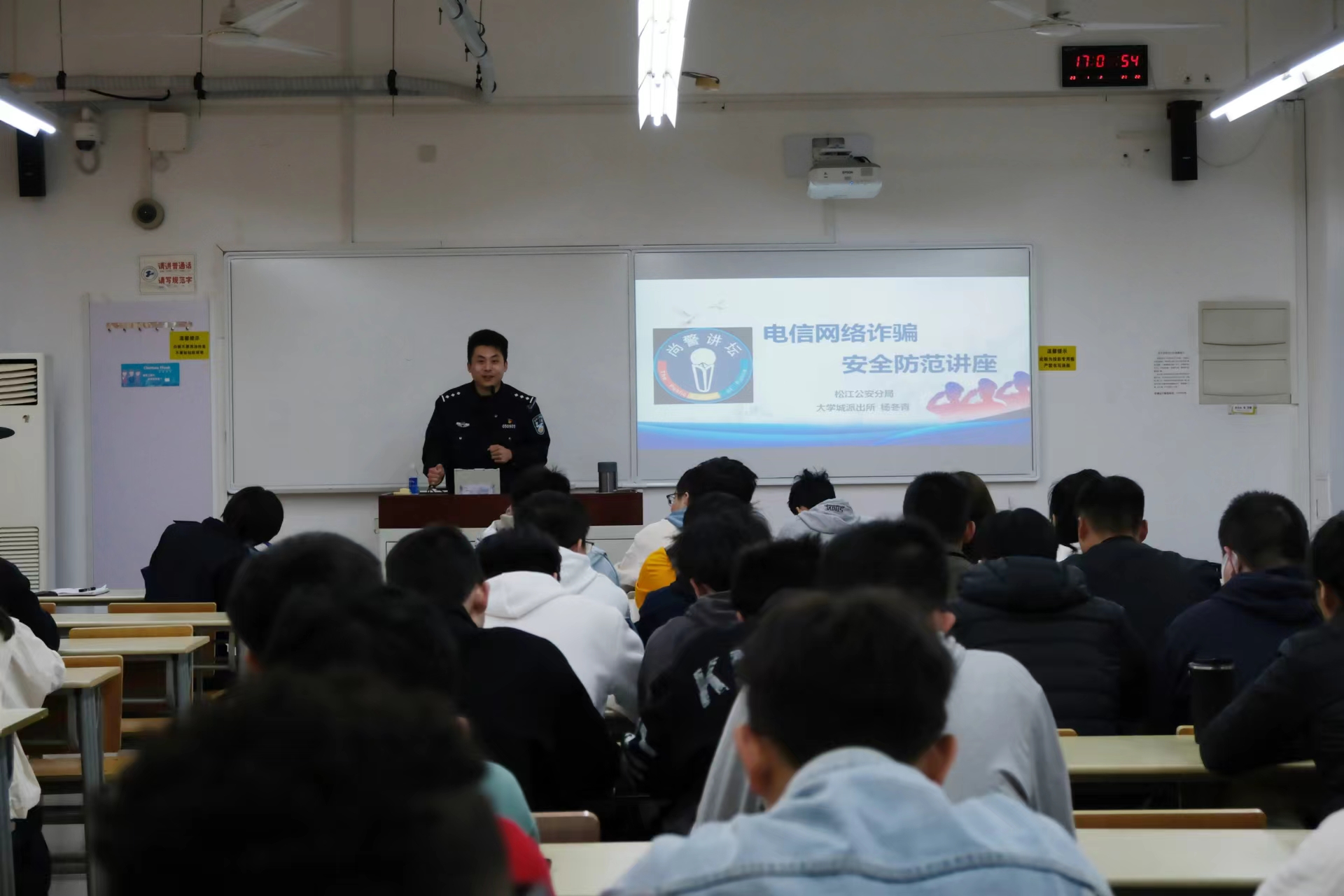 为进一步增强大学生法制意识,认清新型诈骗犯罪的本质和手段,切实提升大学生反诈防骗能力,3月14日,化学化工学院团委在教学楼B407教室举办了“你我同心,反诈同行”3.15防诈骗讲座。本次讲座邀请到松江大学城派出所杨东青警长主讲。