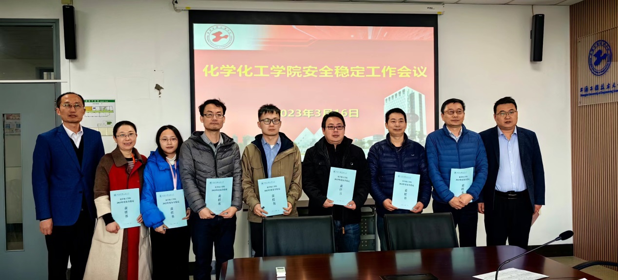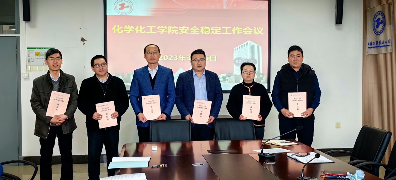 王润锴副院长通报了学院近期安全工作情况,并对有关薄弱环节提出了初步整改意见。其他各条线负责人也对职责范围内有关安全稳定工作进行了分析和通报。最后,举行安全稳定责任签约仪式,学院领导与副职领导、系室主任、支部书记、高层次团队负责人分别签订了《化学化工学院2023年度安全稳定责任书》。