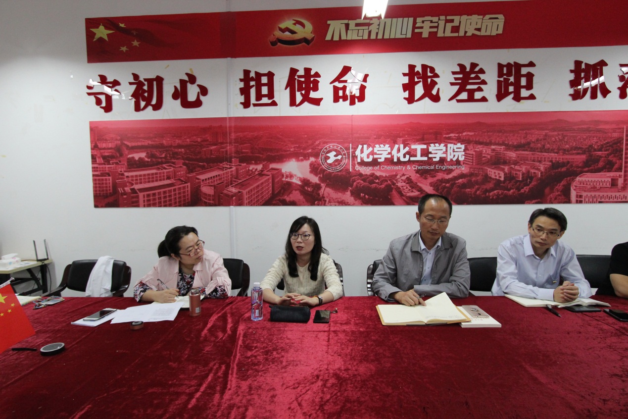 为深入推进“不忘初心、牢记使命”主题教育工作,提升基层党支部工作实效,10月17日上午,化学化工学院党委特邀上海新时代高校党组织“攀登”计划“上海党建工作样板支部”——东华大学环境科学与工程学院环境工程系党支部马春燕书记来我校作专题工作指导和交流。本次交流会由学院党委书记宋勤健主持,党委副书记、院长饶品华、党委副书记秦颖、组织员郑晓昱和全体党支部书记参加了会议。