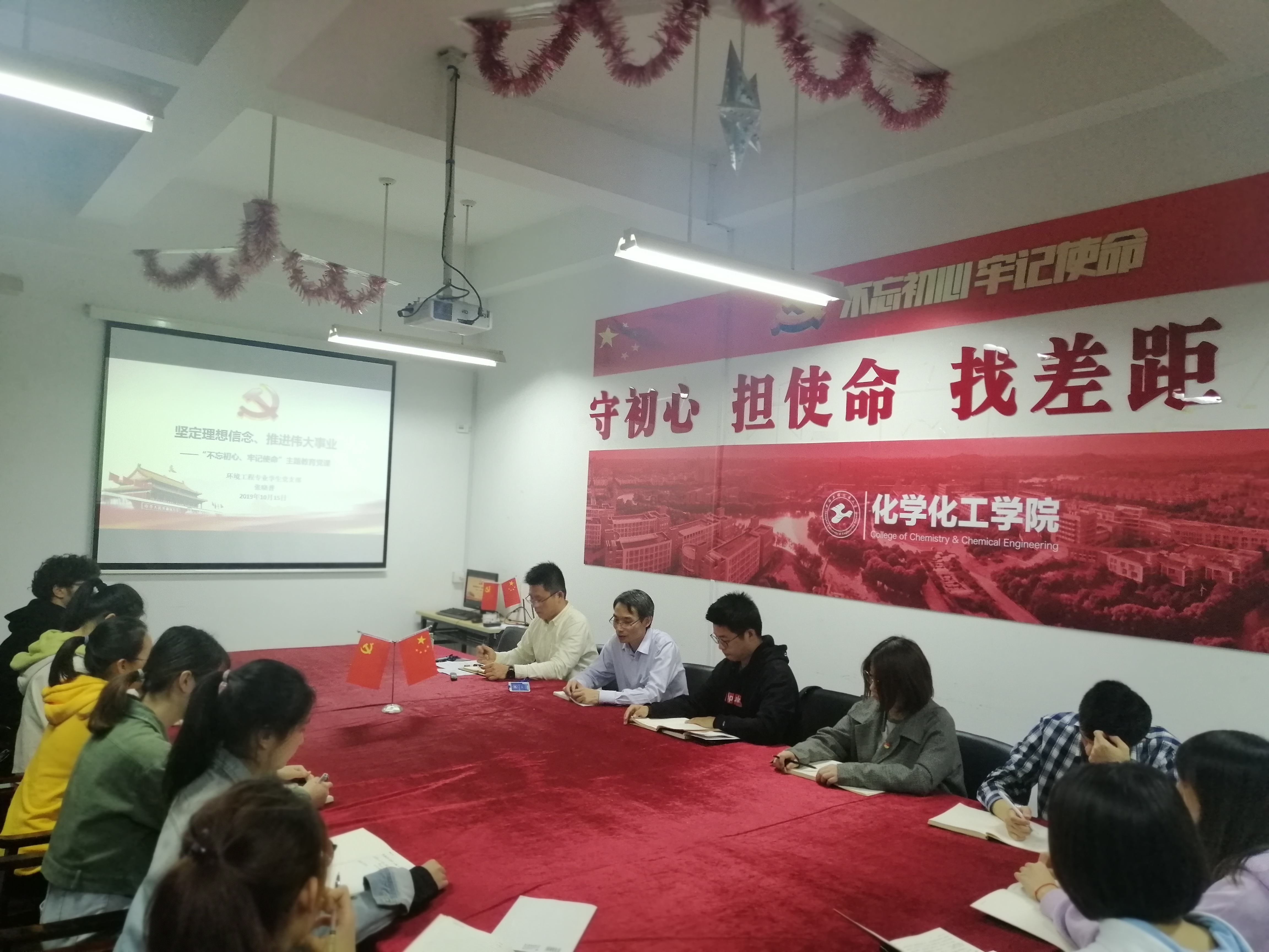 为深入学习贯彻习近平新时代中国特色社会主义思想和党的十九大精神,全面落实党中央关于“不忘初心、牢记使命”主题教育的目标与要求,在学校党委和学院党委的安排部署下,10月18日下午,环境工程学生党支部支部书记张晓普以“坚定理想信念、推动伟大事业”为主题,为党支部全体党员上了一堂“不忘初心、牢记使命”的专题党课,学院党委副书记、院长饶品华参加了专题党课教育。