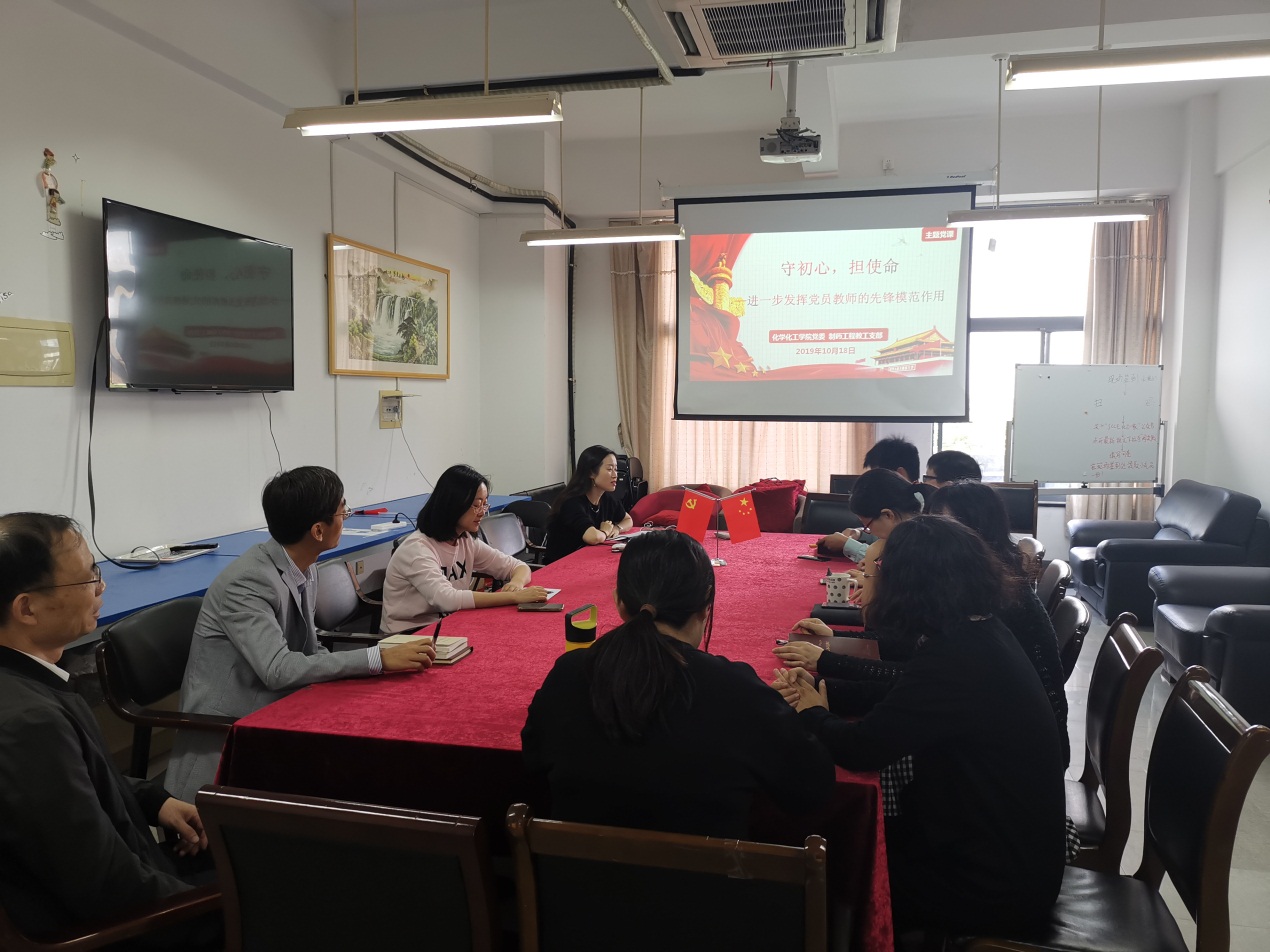 1018日中午,化学化工学院制药工程教工支部开展了题为“守初心、担使命,进一步发挥党员教师的先锋模范作用”的题党课。支部书记赵桃同志聚焦了“四个讲清楚”,从对初心和使命的感悟,对习近平总书记关于教育的重要论述的学习体会,思想上、工作上、作风上存在的差距以及加强和改进的思路措施等四个方面与支部党员们做了思想交流。课后,党员们纷纷表示,作为新时代的党员教师,要统一思想,提高政治站位,全面把握“守初心、担使命,找差距、抓落实”的总要求,坚定理想信念,增强斗争精神,践行教育为民的宗旨,以主题教育的深入开展促进学校各项工作提质、提速、提效,更好地把提高教育教学质量和培养合格的社会主义事业接班人落到实处,为我国的教育事业做出自己应有的贡献。