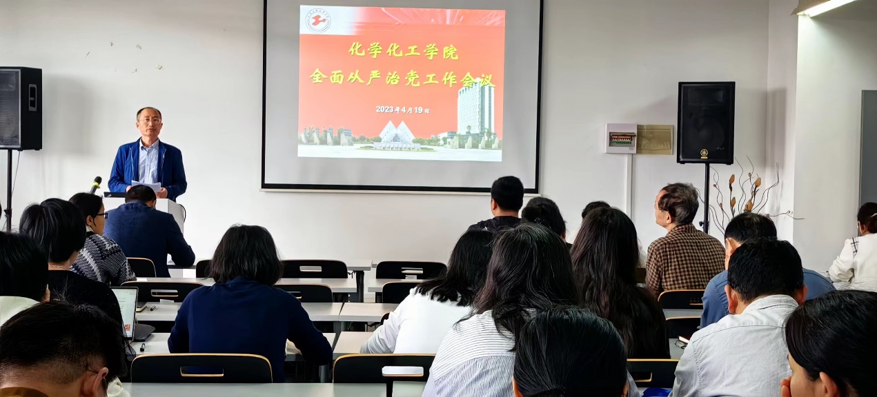 为严格贯彻落实学校党委全面从严治党工作会议精神和工作要求,部署学院2023年全面从严治党工作任务,4月19日,化学化工学院党委在实训楼4418会议室召开2023年全面从严治党工作会议。学院党政班子成员、党支部书记、系室主任、教师党员等参加会议,会议由学院党委书记宋勤健主持。