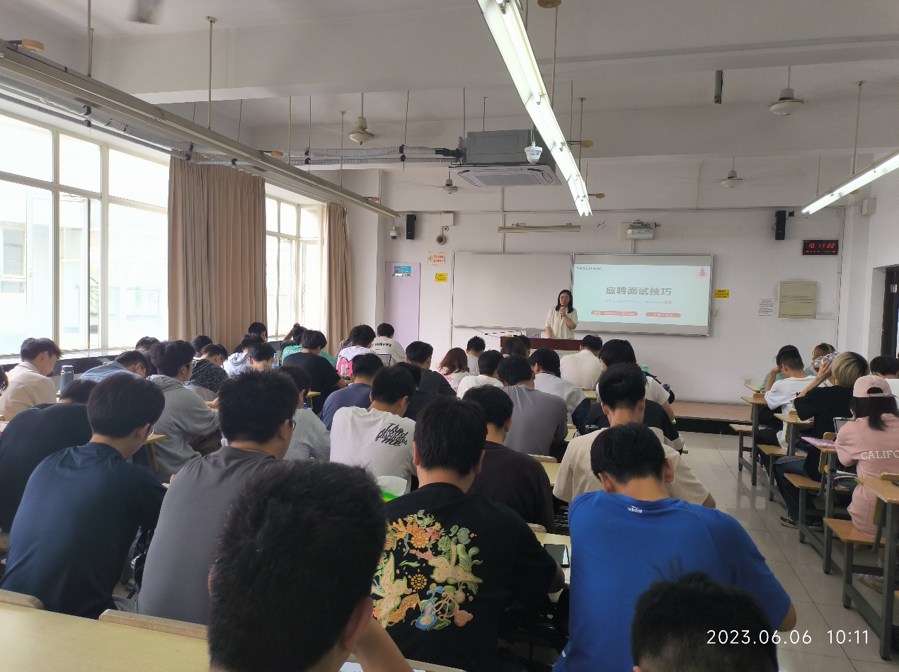 招聘宣讲中,朱经理向同学们介绍了伟星集团的企业定位和职员培养,学生们积极互动,了解就业岗位信息。同时,朱经理还现场指导学生如何进行招聘面试,注意细节,如何避免学生在招聘面试中普遍出现的问题,竭力帮助学生顺利就业。