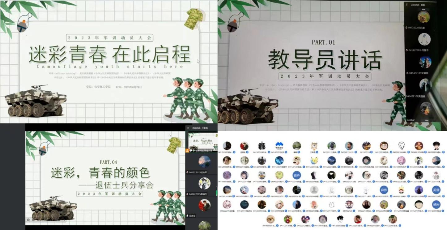 为落实国家国防教育的相关要求,全力做好2023年军训工作,化学化工学院于6月21日召开2023年军训动员大会,学院党委副书记秦颖,三位参训辅导员以及2022级参训学生参加会议,会议由军训专职辅导员王新燕主持。