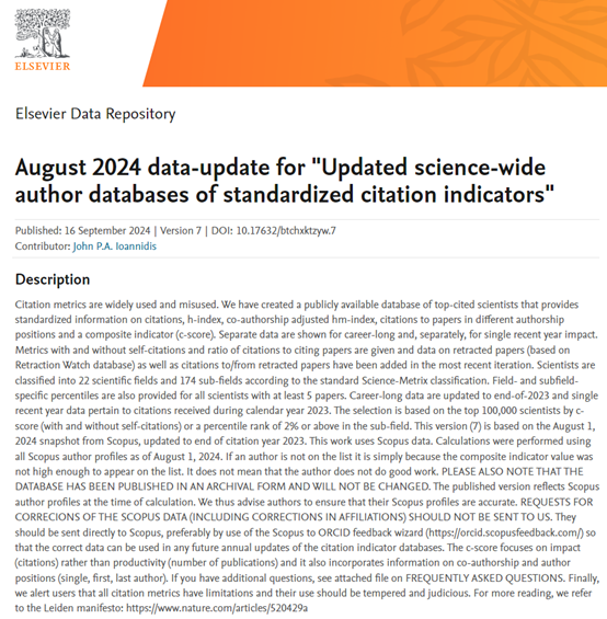 Prof. John Ioannidis’ team from Stanford University recently released the 2024 World's Top 2% Scientists (the seventh edition) in various disciplines on the official website of Elsevier Publishing Group, by counting the number of papers published by scientists and their number of citations, using six kinds of indicators to model the comprehensive score and consequently select 217,098 scientists roughly covering the top 2% of scientists in each discipline. In total 10,687 scientists of the Chinese Mainland have been selected, accounting for 4.92%. A total of 16 scholars from SUES were selected for the annual list and 8 scholars were selected for the lifetime List.