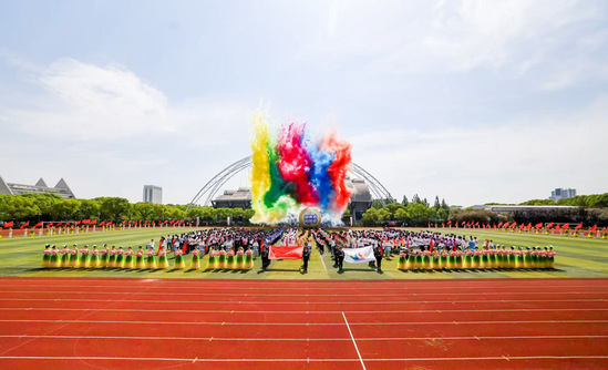 The opening ceremony featured a series of exciting sports performances. The traditional loong dance “Chinese Loong” ignited the audience’s enthusiasm with its eye-dotting ritual. Four hundred female students from the line dance showcased the unique spirit of Chinese athletes with their vibrant routine, “Game on, Champions!” The staff’s Baduanjin Qigong demonstration embodied the resilience and commanding presence of educators. The large-scale group gymnastics performance “We Create” beautifully expressed the enduring “SUES Spirit” which has developed over its 46-year history, dazzling the audience with a spectrum of light and movement.